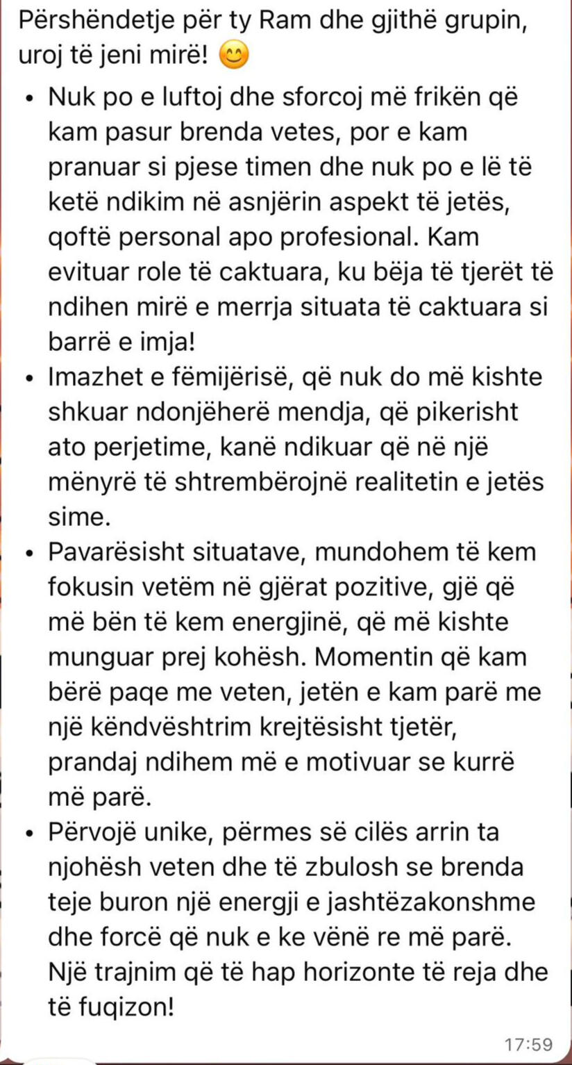 Është një eksperiencë që ndikon direkt tek vetja jote e brendshme.Çfarë do të përjetosh:🔹 Identifikim i bindjeve që të mbajnë pas